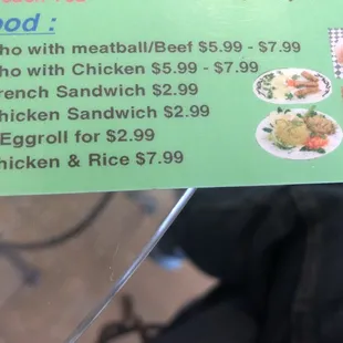 French sandwich. Not a lot of meat but tasty and a good deal for only $3. During happy weekdays 2-4pm buy 2 get 1 free sand or 3 eggrolls