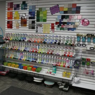 So many options to choose from, with a wide range of prices. Lots of colors, even specialty colors to choose from. Every kind of brush you could possibly need. Super friendly staff and a really nice relaxing environment! Bring a small snack or drink though, depending on what you choose it could take a couple hours.