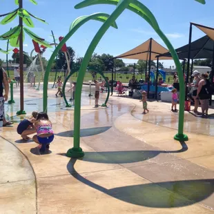 Moore planned this park very well and spared no expense installing real restrooms as well along with modern splash equipment and heat resistant modern playground equipment as well. Enough picnic table seating, all shaded, for 200. Never seen it crowded or too loud and unruly. Laid back relaxing. Everything is spotless including restrooms, splash and playground area. Lots of shade!! There's a water fountain! This park is in a nice part of town as well. There's a half Mile walking trail, sidewalk, for exercise and walking those babies to sleep with benches for another 50. What another gem for Moore (you should see their happy tails dog park!). Ample parking, shaved ice for right after your visit right across the road. My five year old loves when I take her to this park and it never fails as we slowly make our way to the car, when it's just her and I, she invariably turns to me and tells me she loves me! I think they should run a fence along the stream that runs down the side of this park but it's far enough away that hopefully no toddlers break away and end up in the stream. As we were leaving this time there was a beautiful white egret on the side of the stream stretching out its slender neck to catch fish. This splash park would also be a great place to hold a birthday party and you wouldn't have to rent it, it's free and the tables and cement and really the entire park is kept spotlessly clean. I love you too Annabelle!