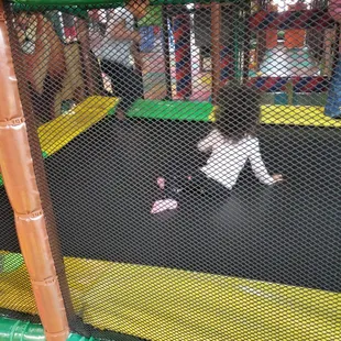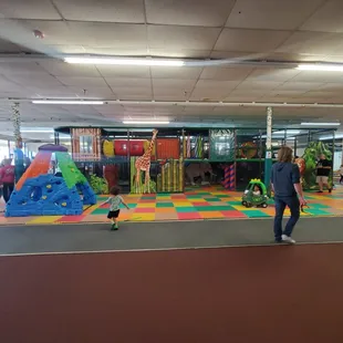 Wow! Terrific indoor play area for kids! Adults must remove their shoes and have socks on to enter as well. If you didn't wear socks, they have them available for purchase. It's $10 to enter or you can get a monthly membership for $35. It's a great place to let the kids burn off steam for a couple of hours so you can get some computer work done.