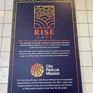 Amazing quality breakfast and lunch items and awesome interior decor. Exceptional service as well and food is brought to you promptly. Moreover, all proceeds go to supporting the City Rescue Mission nearby, a great cause, and individuals from the Mission are able to work there. Come visit this place during the day before it closes at 2pm!
