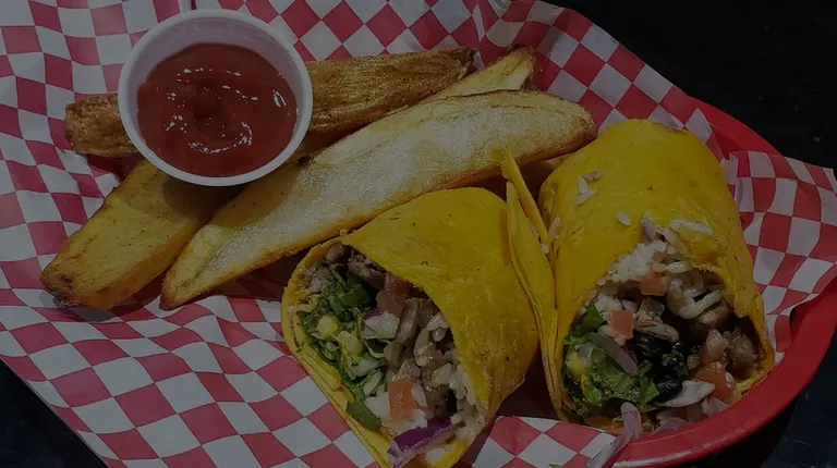 a burrito with a side of salsa