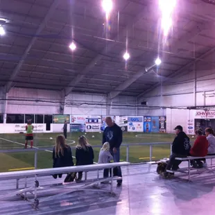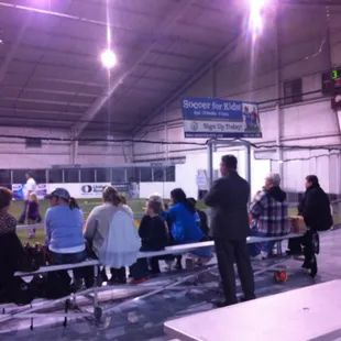 I come here sometimes when my husband plays soccer and it's quite clean for a facility of sweaty players. We usually come in the evening timeOn Sunday and not to be sexist... But there are only male players but whatever.Not sure on the hours because my husband has played games that started past 11 pm.There is a top and bottom floor. The top floor is where you enter with two entrance and it is also where the restrooms are located.Bottom is where they have two Indoor soccer arena. Seems like each game has two halves with 25 minutes each. Bottom area has benches for people to cheer them on. They also have some kind of concessions area where you can buy snacks and beer. There is a sign that saids no outside food or drink but I always bring a water bottle.