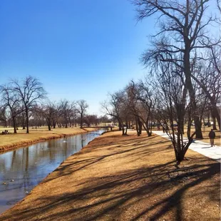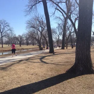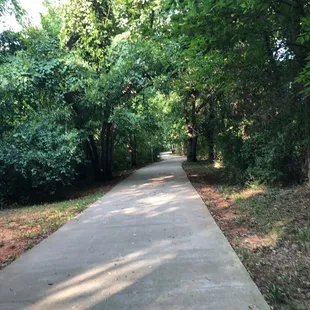 This is a great paved trail to walk or run on. It is large enough to easily pass other people if you need to get around. Its roughly one mile each way. I like to keep going and not turn around and go around by the street to hit a 3 mile loop roughly. Most of the trail is in the shade or partly shaded at least. There is a little stream/ river by the trail and it is a nice trail because of the nature around you. There are also a lot of squirrels too. They are really cute. Sometimes I see them laying on the pavement to cool themselves off. They are adorable. If you like trails, nature, and wildlife, you should check out this trail. It is very easy to find and if you have a dog, there is a dog park by the trail for small and larger dogs.