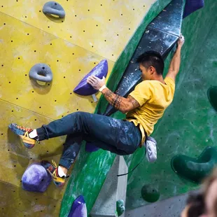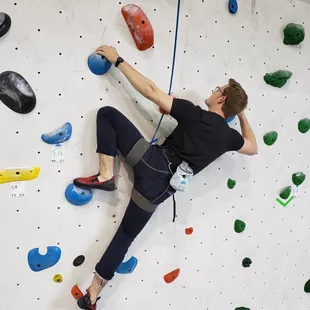 Great place to come try climbing!The staff here are very friendly and informative, nice large area so you can try climbing all sorts of different types of challenges. This really tested my grip strength, I plan on coming back often to improve on this. It's somewhere around 20 bucks if it's your first time and you're doing bouldering (short burst climbs, lots of traversing) no harness rental so you just fall into a padded mat. I found this to be very challenging. They said the ratings go from V0 to V16. As a first timer, I could barely complete V2. Very conveniently placed facility, clean (not like it can get very messy) and overall great place to come try your hand at climbing.