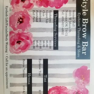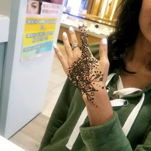 I had my eyebrows threaded and she took most of my eyebrows. They are now very thin and short. The worst I've ever had done. My daughter and I both got henna tattoos. We had a picture for her and she was very good at designs but she did mine first and didn't follow the design. She put the design on all five fingers instead of just the one as the picture showed and took off from the arm design then charged extra for doing all of my fingers. When she did my daughters I explained she didn't want the changes and she did it just like the picture. The bad part is when it dried and peeled you could barely see the tattoo. Maybe the henna was diluted not sure but it was a waste of money. Do not recommend.