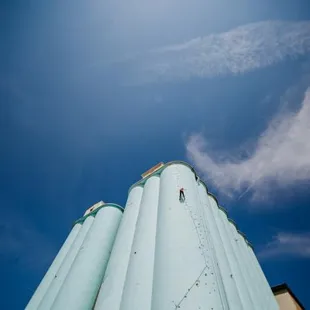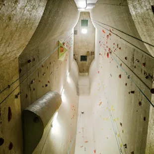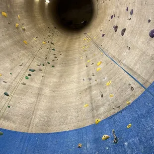 For beginner climbers, this location is a poor choice because all the routes are at levels 5.9 or higher. I only saw one route that was a 5.8, and it was on an auto-belay. However, if you have some climbing experience already, this place is so cool! In addition to the general routes inside the silos, there are also routes located between silos, and routes that make you traverse over obstacles and around doorways. Some routes get darker and darker the higher you climb, so you get a spooky feeling of climbing into a reverse abyss. Also, there are routes on the outside of the silos for lead climbing! I'm from Dallas, so I don't get to come here often and don't know how often new routes are added. But just based on the novelty of the gym, I have to give it 5 stars