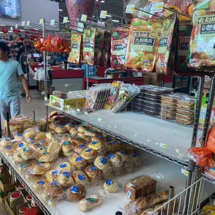 a variety of snacks on shelves