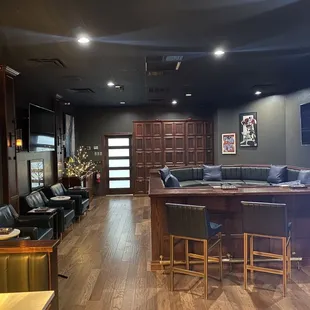 Small but mighty, this ranks as my number one cigar lounge in Oklahoma at the moment. This is typical a members only lounge, but since they weren't busy and I bought a cigar, the staff were generous to let me check it out. The selections and prices are great. But the lounge is a nice surprise. It is very well ventilated. Dark walls, leather seating areas, and glassware for your favorite beverages makes this a contemporary and luxurious space. While there are three TVs, only one was on, providing for a relaxing environment and not the a sports bar vibe that so many cigar shops have; it's truly a lounge experience. If I lived in Norman, I'd definitely want a membership here.