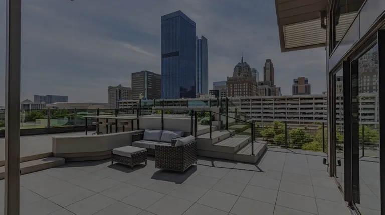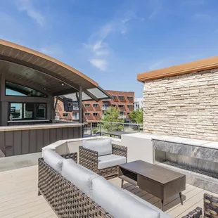 Bright rooftop-level mini-kitchen and sitting area