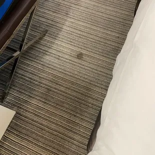 Dirty floors stains, twin beds pushed together