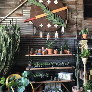 Walking through the rustic doors of the shop, located in downtown OKC, you are greeted by a scene that is, simply put- Adorably Aesthetic. Plants have an obvious careful arrangement, set among vintage wagons and wood, string lights strung on the ceiling. The atmosphere is just calm, it would be a good study place and they have a lot of seating for their coffee shop. The lady working was very kind and offered to send us with dirt to plant our new friends. I would rate this experience 10/10 and I plan to be back to pick out another arrangement again. Prices are VERY decent, and they have an selection of small plants to large plants and various pots. This would be a good place to go if you wanted an afternoon activity or just wanted to look around, or just to sit down to drink coffee.