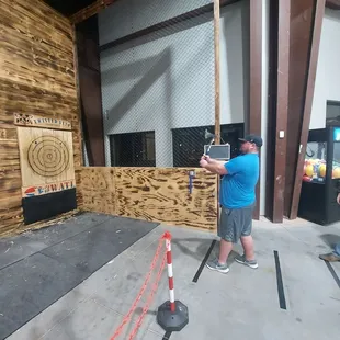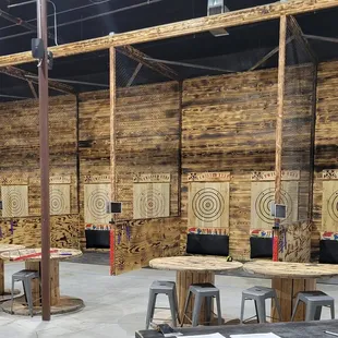Great place! Large open room with lots of lanes to throw in. We had a party of about 20 and it accommodated us easily (with lots of space left for other customers) We went during their "happy hour" and were able to get cheaper throwing. They have two axe size options. There are arcade games in the upstairs loft. The owner had us watch a solid information video and then personally showed us how to throw axes and such. Super nice guy and he checked on us throughout our time there. If you're wanting to throw some good ol axes around definitely a great place to check out!