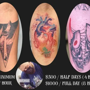 I called at 4 pm looking for a tat a guy was free and could do a tattoo and a cover up, was nervous not seeing they work prior and never been before new to okc but was kid free and wanted a tat so I went, 4 hours in and he did an amazing job. Thank you!!! Will definitely be back!!!