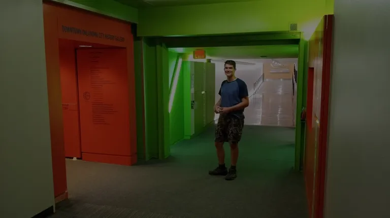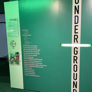 3.5 stars. Underground is the tunnels system below Oklahoma City. This tunnel is use for walking below the city when the city is fully covered by snow. It is very good use for winter time. The tunnel protect you from severe weather or cold wind. The tunnels system link the commercial area, shopping, banking, restaurants, parking garage. Basically you can use it as a walk tunnel to connect all business. There are several tower in downtown that connects the tunnels. Many downtown people use it as walking path for restaurants during lunch time. We got into the tunnel through the Arvest building. We took the elevator to LL level to parking garage below the building, then followed the red painted path to enter the green tunnel. The tunnel divided into colors system. Each color represents different zone and art area. We saw many historic picture and art at tunnels. Visit time take about one hour. Th