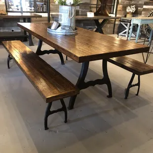 We had driven by this store a couple of times (and always on a Sunday when it was closed) and thought it merited a stop in.We finally found it open on a Saturday.What a place. The owner greeted us and introduced himself as soon as we entered and told us about his business. The handmade furniture is remarkable. Table tops are made from reclaimed wood, everything from old boxcars to old trailers to timbers. The trestles they set on are almost as amazing. True works of art! They offer custom designing, too.They scour the area for unique pieces and there are some amazing doors here as well. Stop in (even if your not in the market for new furniture)!