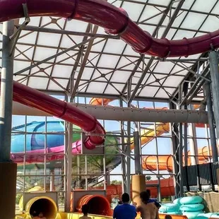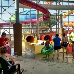 We just spent the 4th & 5th of July playing at this water park and had a blast! We had three children with us . 11,7,4 all over 42" so they could ride all the slides which was awesome however their kid area was really cool and my two younger ones played in this area also! Although this is in door the roof opens up and you will burn - wear sunscreen! They open at 9 am but the slides don't open till 10 amThey don't accept cash at the concession stand so when you check in you have them load your cash onto your wrists Band . We loaded money on each kids band for their daily spending .They have a gift shop if you forget your flip flops , sun screen or need something to take with you home.Their website says no outside food but they must make exceptions because I saw a family with a cooler.Not as nice as great wolf but half the cost and no lines !