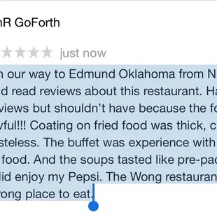 My friends and I ordered take-out one night after talking about it for weeks. I had tried Wong's two or three times before and wasn't super impressed, but that was years ago, so I was hoping it would be improved. Sadly, I still wasn't too happy with the food.First off, you have to call to order. I don't believe they have dining in, but I'm not 100% sure on that. When calling, it took me forever to get through. It was busy for about 15 minutes. Once I was able to get through, we were told it would be about 25 minutes before we can pick up. No problems there. The woman I talked to was very pleasant and efficient. I'm pretty sure the same woman on the phone was the same who ran our order out once we arrived.My two friends ordered combination plates. Neither of them were really impressed. One of my friends also ordered egg drop soup. Not only did it not smell appetizing, it also had a pretty noticeable hair right on top. It was long enough I find it hard to believe no one saw it. I ordered vegetable chow mein. The vegetable broth was ok, not amazing but not terrible. Most of the vegetables were obviously fresh, so that's a good thing. However, the noodles was just a bag of dried noodles, similar to what you see as a topper on soup. It absolutely ruined it because they were very generic, super bland, and definitely not what I was wanting or expecting. The crab rangoon was honestly the best part of the meal. There wasn't much imitation crab inside, but the flavor was decent. However, they were ridiculously huge wonton wrappers for the size of the filling. A ton of friend wonton wrapper for basically a half-spoonful of filling. I ended up taking the crab rangoon home and put them in the air fryer for a bit, and they were honestly much better that way.Honestly, I have no idea why this place has such a local reputation for being good. The best way to sum it up is the cheapest quality, Americanized, fairly expensive Chinese food you can get. I know they have quite a following, but I can make better at home.