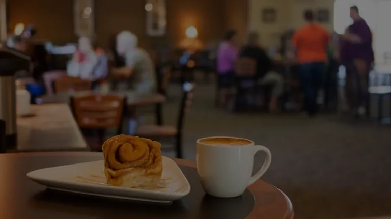 Coffee is good but this place is in church lobby, and a fairly large church at that. Odd. It's okay, has some comfy chairs with cup rests and a fireplace for winter days, but it feels more like islands in sea of tables and chairs. I prefer a more cozy coffee house atmosphere and certainly wouldn't prefer going here during busy church functions.