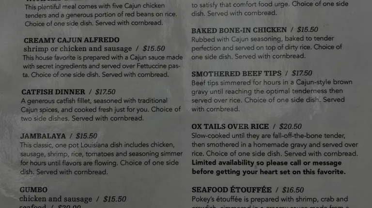 Classic Louisiana rice dish made with chicken, sausage, and shrimp. Served with cornbread and one side.