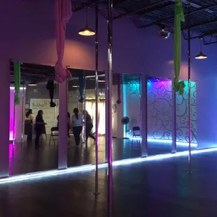 Very nice staff! The classes are $20 to try. It is amazing how much strength you need.They don't make your feel awkward or weird. They teach you the tricks matter-o-factly without any awkward innuendos, like I had feared. Super fun to do with friends. Make sure to bring SHORTS and a mat. You will regret forgetting both of them!