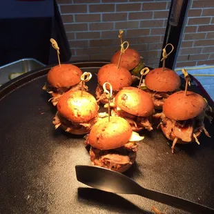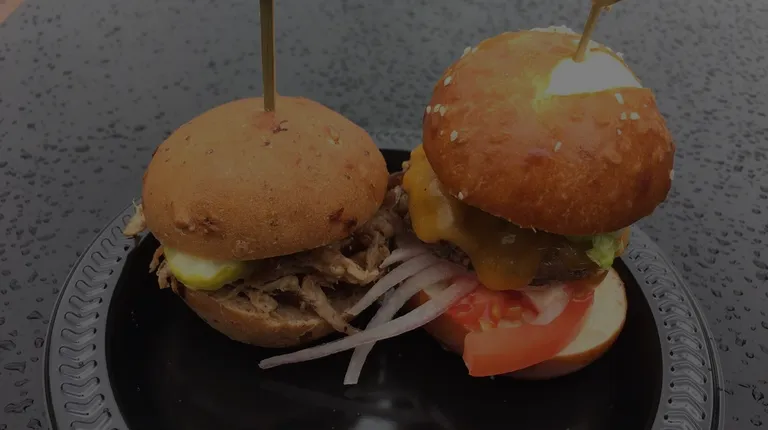 BBQ pulled pork slider and Bacon cheeseburger slider. Both delicious!