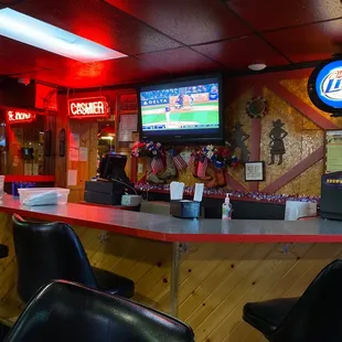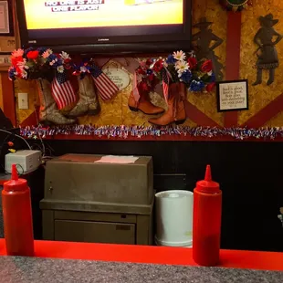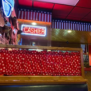 Beautiful patriotic display in the bar area.