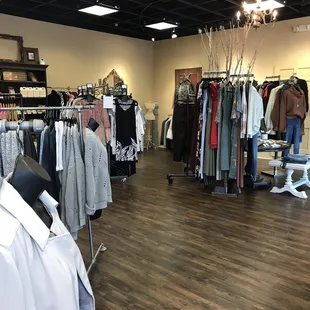 Owner was very helpful in starting a dressing room for me and making herself available if something didn't fit. I had fun chatting her up about clothing trends and styles.This boutique is trendy and fairly priced. I ended up buying 2 pieces from the rather large 40% off rack. Fits my current budget and I got fashionable tops.