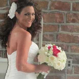 Something old, something new. Alisa incorporated Annabelle's great grandmother's handkerchief and her new family rosary in her bouquet.