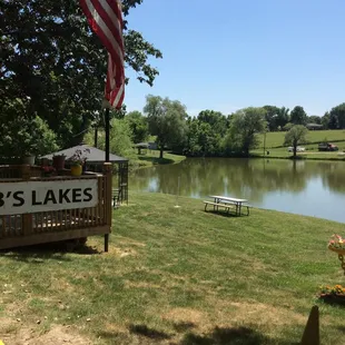 Bobs fishing lake has a large deck area to sit and enjoy your food. A nice gadget geocache is located there on the deck too.