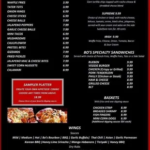 the menu for bo's west burgers