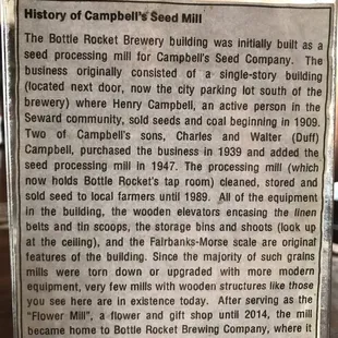 Seward, Nebraska has a gem of a brew pub in the Bottle Rocket Brewery. Located one block from the town square, Bottle Rocket is housed in a former seed mill. The owners have gone to great lengths to share the buildings roots via wall photos and tabletop flyers. Multiple brews and ales were on tap and a limited snack menu was available but patrons are allowed to bring in outside food. We tried the Bottle Rocket blonde ale and the seasonal blueberry ale. As small time beer and ale drinkers, our palates may not be as refined as others. In our judgement the brew was cold, tasted good and the hospitality was welcoming and friendly. Who could ask for more?Seward is known for its Fourth of July celebration and and Bottle Rocket Brewery has extensive outdoor seating that will be a popular spot to enjoy the festivities. A converted silo gazebo out front will surely attract a crowd!