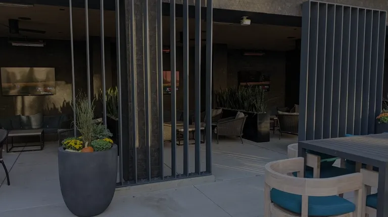 the outdoor lounge area of a hotel