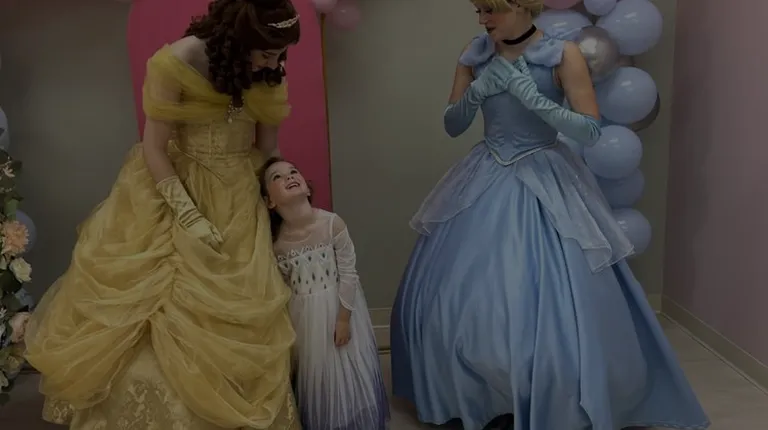 three girls dressed in princess dresses