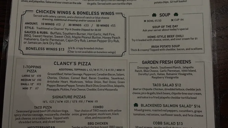 We were introduced to Clancy's through some friends and it has turned into our local location for Oklahoma State football watch parties for most weekends. So, if you see this and know an OSU fan, let them know! Anyway, back to Clancy's, we really like the place. There is a big bar area and plenty of seating and TV's in the main area. There is also a back room with additional seating, a pool table, darts, and an area for indoor cornhole. The food we've gotten has all been pretty good. I got a chicken philly the first time, which was good not great, and my wife got pizza, which she really likes. The last couple of times, I've gotten the wings. You can get the wings traditional style or charred and I like the charred with the grilled flavor but also like to have some additional sauce in which to dip my wings. They are really good wings. The menu is typical bar food but they do it pretty well. The service has been really good. Our watch parties have had the privilege of being assisted mostly by Lindsey, who is very attentive and sweet. She has taken good care of us and I know we appreciate it! I've not been into Clancy's beyond our watch parties but it is just down the road from our house, so I do anticipate stopping in just to grab lunch or dinner once football season winds down. Check it out if you are in the area!
