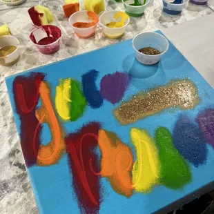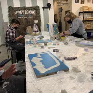 Corky was so much fun! I had never experienced the board making side of corky canvas. Personally, I would rather pay to make a board then a canvas. 3 reasons why:1. You can use stencils 2. You dab/blot paint on 3. I like the wood The drink options were okay, they had no seltzer's which I was bummed about. The bubbly on hand was great flavor, I got the peach flavor... YUM! The instructors were good, even though I had to wave them down for help. I wished they came around more often but they were attending to a party of 15+! This is a great birthday idea, be ready to spend 2.5-3 hours here to perfect your board!
