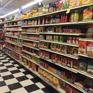 a checkered floor in a grocery store