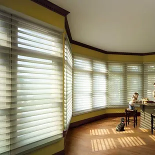 We have had our Hunter Douglas for almost 3 years. The design gal came to our house and helped us pick out color and type. We were extremely happy with our choices and the install. We have since recommended them to fellow neighbors who have also been happy. We had a small window next to our front door and they came up with a great solution for that window. I've attached a photo for reference. We also went with all the tech features like the Power View App which allows you to open/close by cell phone. You can also set times for them to open/close automatically. We also like the stylish Pebble.