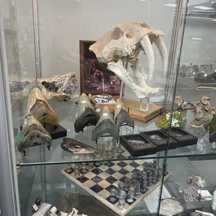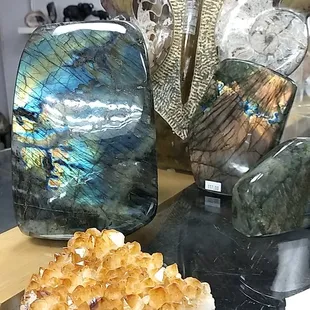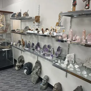 A combination rock shop and jewelry store. Giant geodes; amber jewelry; cheap silver jewelry with semiprecious stones (ask what they are; some were real; some were glass); fancy jewelry with gold and gems; Zuni style turquoise jewelry; fancy cut semiprecious gems priced by the carat (need $300 worth of fancy-cut amethyst? they'll offer you some settings); cheap elastic polished rock bracelets; mounted rock samples; a big box full of tumbled pebbles for 15 cents each; apothecary jars full of various stones in alpha order (ranging from 50 cents to $14 each); giant rock samples of quartz, etc. priced by the pound; display stands, etc. for your rocks; and tumbling equipment. I'm concerned about the lady's emerald in another user's review, but I had a lot of fun poking around. If you like rocks, you're gonna love this place.