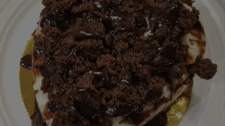 The Strawberry Dream cake with stawberry and vanilla swirl ice cream and topped with a stawberry and vanilla crumble topping.