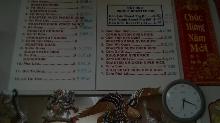 My Vietnamese friend told me to try their Vietnamese BBQ. They have variety of meats (2 kinds of ducks, chicken, pork bellies, pork ribs, Chashu - spell?, etc.) and I love them all.I go there to get BBQ for dinner, so the master gives me small amount of sauce too. The only thing is I am not sure how often they cook. My friend goes there only on Saturday because there are more customers on Saturday and the meat is fresh. But I work nearby and I want to pick up dinner on weekday. When is the best day of the week to visit?No eat in space so you need to take out your lunch.