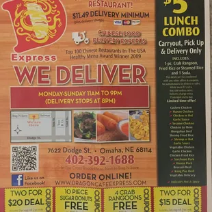 Update: we gave them another go - they no longer make the dumplings that way - the plump fluffy delicious folded pocket of wonder is now the super flat gyoza-like usual suspect. Envision a human dropping to their knees shaking one fist at the sky...--------Discovered Dragon Express while hunting for in house dumplings. They had them. They were good. I must also note the crab Rangoon's. Huge, creamy puffs of goodness. Let us blame pregnancy cravings for the upsetting amount that have been consumed in the past. However, I have no excuses for my continued appreciation of them. Sadly, we have not been back in a long while due to our last three visits presenting us with over cooked dumplings, leaving a bitter taste and mood. We have ordered other items a handful of times but found the American-Chinese food to be nothing extraordinary although the lunch special is a crazy deal. This is a pick up/delivery place. The staff recommends pick up and so do I considering the quantity of negative delivery reviews. All this talk of plump home made dumplings and creamy filled fried dough pockets is encouraging me to give Dragon Express another go.