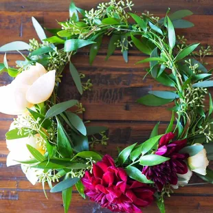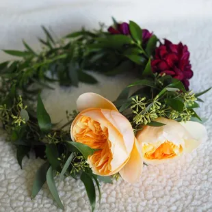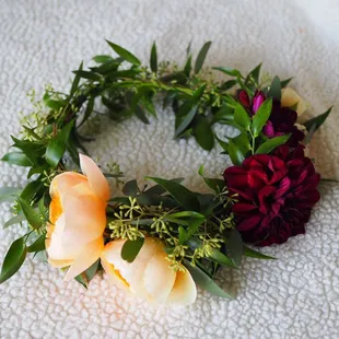 I recently commissioned Everbloom to make me a flower crown for our Fall family photos. I sent floral creator Rebecca a heavily loaded (read: $$$) inspiration picture and a price point, and she was able to make it happen by using similar looking but less expensive accents in my crown. All communication was through email about a month in advance and everything went smoothly on pick up day as well. The Dahlias on the crown died/wilted about 3 days after despite me keeping it in fridge, but the Jane Austen roses continued to look amazing for 7 days with careful care. I would keep in the fridge most of the day and then set it out while home in the evenings. Great work from Everbloom and would not hesitate to use them again. also FYI crowns start at ~$50 and go up depending on fullness and flower type.