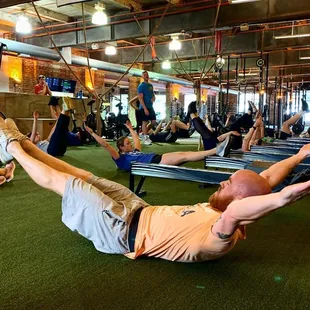 Love this crossfit gym! Amazing facility with helpful staff and a wide array of programs to help get your fitness goals achieved. There is always an extensive warmup and they provide reusable rags with cleaning spray to wipe equipment down after every workout.