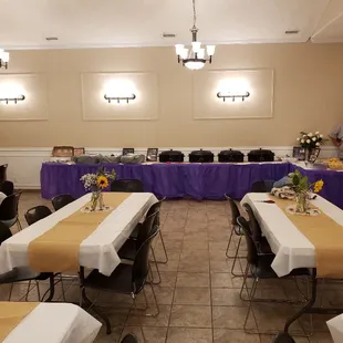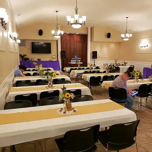 Way nicer than I thought. Actually very nice.Sound system could be upgraded but nonetheless, it served its purpose.Nice stage... so this place could be used for several causes--- performances, weddings, birthdays etc.Staff was very nice.Restrooms were clean.Adequate parking.There are two rooms... not sure if they can open up into one area... it didn't appear to be so but it may.