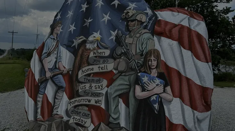 This hallowed 60-ton boulder stands as a shining beacon of patriotism and national pride in Greenfield, Iowa. Each year by Memorial Day, revered local artist Ray "Bubba" Sorensen II adorns the rock with a stirring new mural honoring the brave men and women who have answered the call to serve in our nation's armed forces. Sorensen's remarkable Iowa Freedom Rock® Tour brings these powerful tributes to communities across the state, ensuring that the sacrifices of our veterans are forever memorialized and celebrated. This sacred monument stands as a testament to the unbreakable spirit of American freedom.