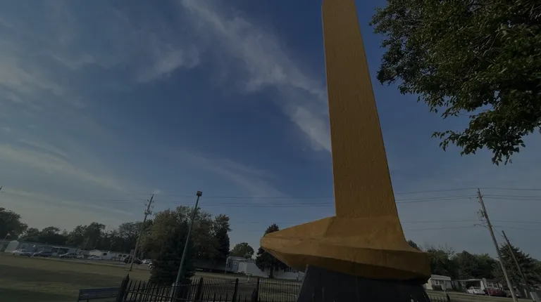 For U.S. history fans and railroad aficionado's, the Golden Spike Monument is the thing to see while in Council Bluffs, Iowa. It is located adjacent to the Union Pacific Railroad main yard in Council Bluffs, IA. The large spike stands 56 feet tall and was "made out of 532 sacks of concrete, 67 cubic yards of granite rock, 38 cubic yards of sand and seven tons of reinforcing steel. Ten gallons of gold paint were used to twice coat the monument," said www.councilbluffslibrary.org. The spike was dedicated on April 28, 1939 with the premiere of the film "Union Pacific." It commemorates the junction of the Union Pacific and Central Pacific rail lines at the Promontory Summit, Utah, on May 10, 1869. This Iowa memorial is "Mile Marker Zero" as the Eastern Terminus of the Transcontinental Railroad. Train buffs should go gaga over this and the one I was traveling with loved seeing this Mid-Western spike.AA Presidential Executive Order signed by President Abraham Lincoln in March 1864, gave birth to Council Bluffs playing a prominent role in train lore. The Memorial is kind of situated in an out-of-the-way spot but it is still worthy of a visit, if not to simply honor the great role played by the railroads in our illustrious nation's history.The Council Bluffs Park & Rec Dept. does a good job of keeping the Memorial grounds groomed. A nice 4 STAR YELP PLACE to stop at to pay your respects to the memory of the rails in the onward expansion of our great country.