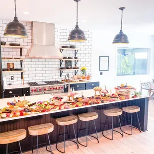 Goat cheese, assorted fruit, meats, spreads, and bread
