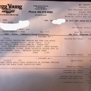 Today I took my wife's 2012 Chevy Cruze into the Greg Young Service department for an unknown electrical issue. They called and advised, that it was the Negative Battery Cable that was bad. Quoted price: 535.36 After doing some research online, I found a GM Issued Service Bulletin (14311B) That listed the part number as well as required Labor time to fix this problem. Required Labor time by GM service bulletin: .9 Hours Greg Young wanted: 59.99 For part # 22754271 GM Direct Online Wanted: 20.96 After bringing the Service Bulletin to there attention they immediately started to look into the quoted price and stated that it was incorrect. The cost to fix it was going to be: 134.99. Then bringing to there attention the price for the part on GM Online was only 20.96, they had to go and re-quote me once again. Greg young ended up charging me 28.64 for the part. I ended up paying a total of 105.64 with parts and labor. Initial Bill: 535.36 Bill after research: 105.64 Total Savings: 429.72 Take your car someplace else!