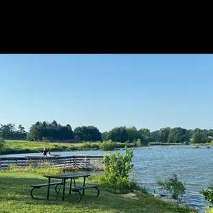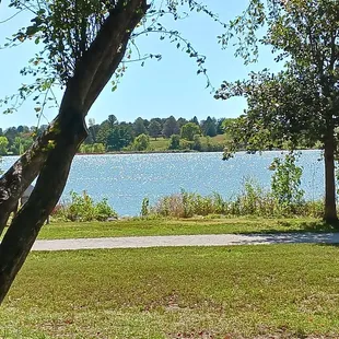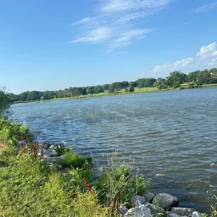 Nice place to sit and relax. There were people kayaking and paddling around on the lake and many joggers/runners/walkers going around the path. Lots of parking spots. Playground area with picnic tables was busy. There were also a smattering of shaded picnics tables where I was near the "dam".If it hadn't been so humid, probably would've stayed longer,